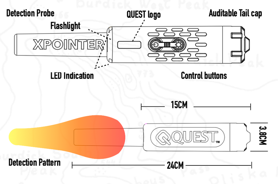 INDICATIONS: Battery Status, Modes, Sensitivity, Fe/Non-Fe.